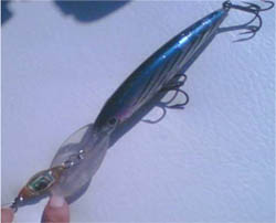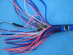With a lifetime of at least 100 hours, Esca tolerates depths down to 1,000 meters. Esca can be clipped on lures or rigs in a variety of ways or used as a jig. The company also makes rubber squid and shrimp that can be fished with an Esca inside. Esca’s founder decided to make the product when he got the idea on vacation in the South Pacific. He saw the natives fishing with the light-emitting organs of fish and squid like they’d been doing for generations.