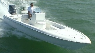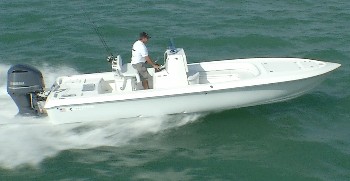12 inches of draft, a 15.5-degree deadrise at the transom, and a 350 h.p. maximum rating.