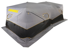 Frabill’s SideSteps are meant for multiple anglers. These shelters are bigger, bulkier and less portable, but are still flip-overs and are roomier and can be more insulated than other shelters. Frabill makes a number of them that are priced up to $899.99. Hub shelters are portable shelters that are bulkier and take more effort to transport and set up. They’re not flip-overs. But they’re more insulated and are roomier for more people and gear.