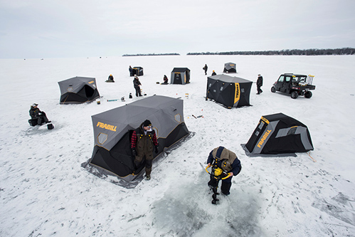 The 450 measures 160 inches long, 80 inches wide and 80 inches high. This shelter, selling for $439.99, features 89 square feet of fishable space and is fully insulated on the sides but comes with a lightweight roof. Companies like Frabill have worked throughout the years to offer many innovations and options in portable ice-fishing shelters. Don’t underestimate the technology that’s been developed, like the fabric. “I can’t say enough about the insulated fabric,” Frabill rep Brian “Bro” Brosdahl said about the materials that Frabill uses. The fabric adds weight but can keep you warm on the coldest days, the Minnesota ice-fishing guide said. To see all of the company’s portable shelters, visit Frabill’s website. |